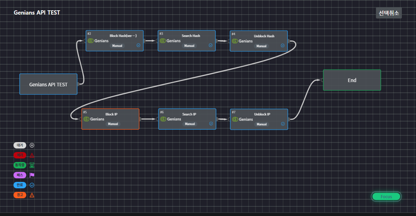 Genian EDR 컴포넌트를 전부 배치 후 수동으로 테스트 차단/조회/해제 테스트 후 Genian EDR Web콘솔에 정상 반영되는지 확인합니다.