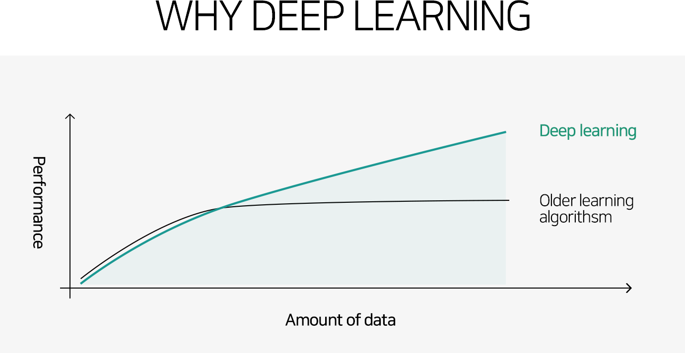 어떻게 불과 수 년 사이에 이러한 변화가 가능해 진 것일까요? 변화의 중심에 머신러닝이 있다고 볼 수 있습니다. 특히 머신러닝 중 딥러닝(심층학습, Deep Learning)은 다른 머신러닝의 학습방법과 비교할 때 프로그래밍의 수고를 크게 덜어 줍니다. 과거 머신러닝을 활용하는데 있어 가장 큰 걸림돌은 바로 피쳐엔지니어링(Feature Engineering)이었습니다. 이것은 분석가(Analyst) 또는 데이터 과학자(Data Scientist)가 특정 데이터에서 특징(feature)을 추출하고 재가공하는 일련의 작업을 의미합니다. 딥러닝은 이러한 특징의 추출과 학습이 자동으로 이루어지는 학습 방법 입니다. 따라서 많은 데이터와 컴퓨팅파워가 제공된다면 충분히 신뢰할 수 있는 결과를 기대할 수 있게 되었습니다. 정리하자면아래와 같은 요인이 딥러닝의 발전과 함께 새로운 플레이어의 출현을 가속화 했다고 할 수 있습니다.