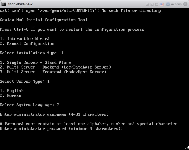 Genians에서 제공하는 Appliance가 아닌 자체 하드웨어 또는 가상머신에 제품을 설치하는 경우 type Model Name 에 "UNKNOWN-CT64" 을 입력합니다.