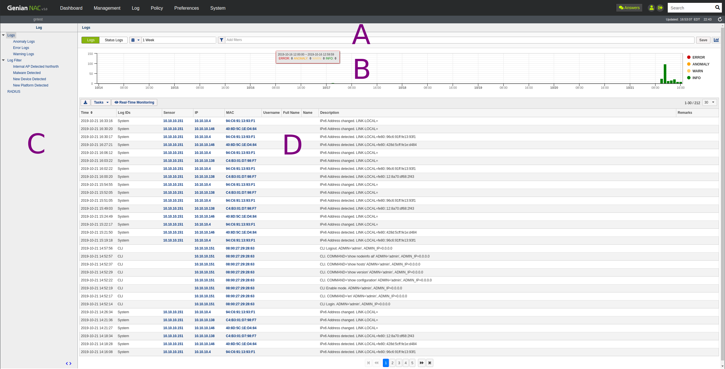 The Policy Server provides a centralized Log View. Information collected from endpoint devices, network devices, and other third-party devices are used to generate logs for security and management purposes. From here, Logs can then be sent outwards to another storage location, such as a SIEM solution.