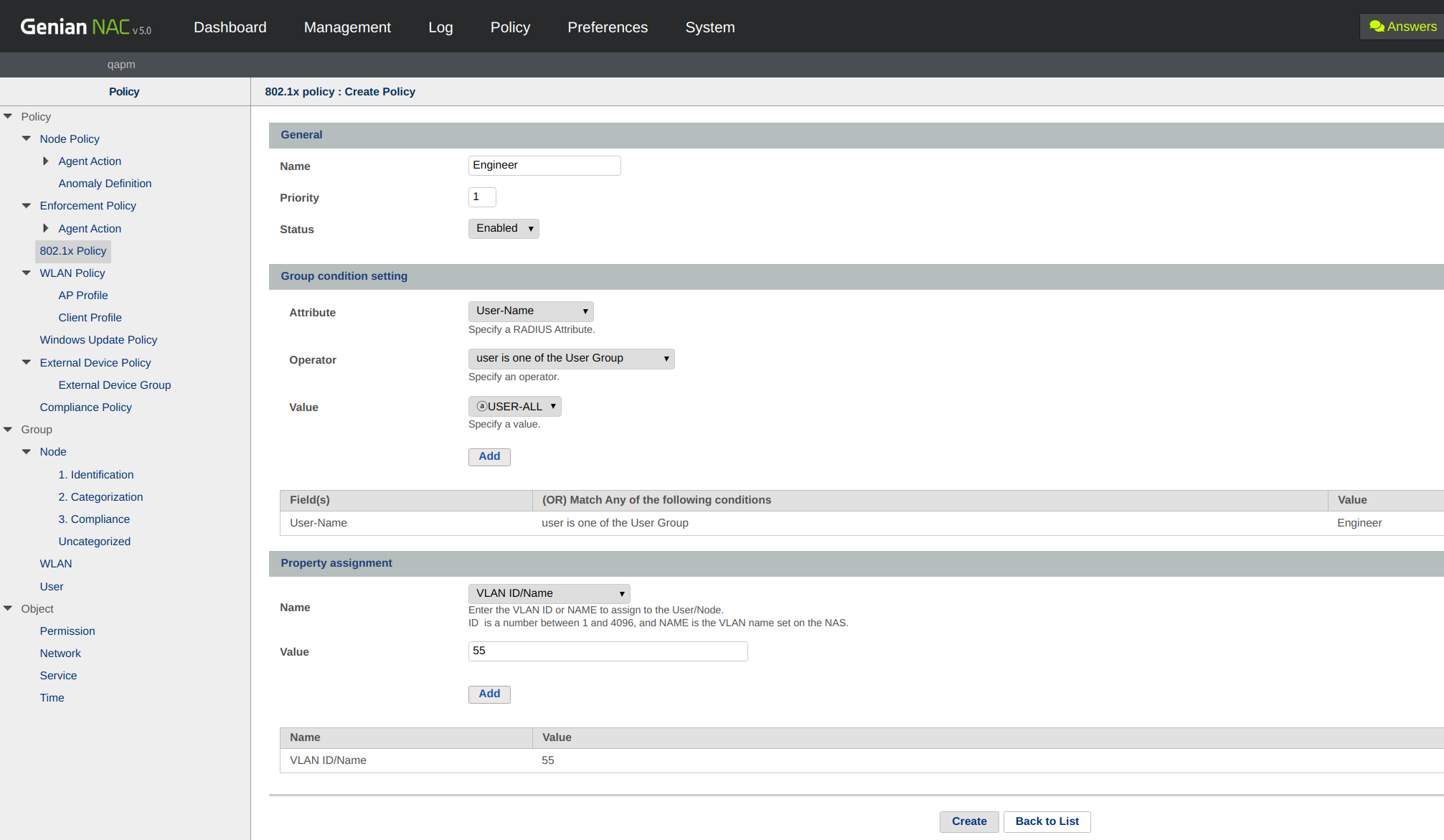 RADIUS-based 802.1x policy setting menu has been added as a submenu of enforcement policy(#20450)