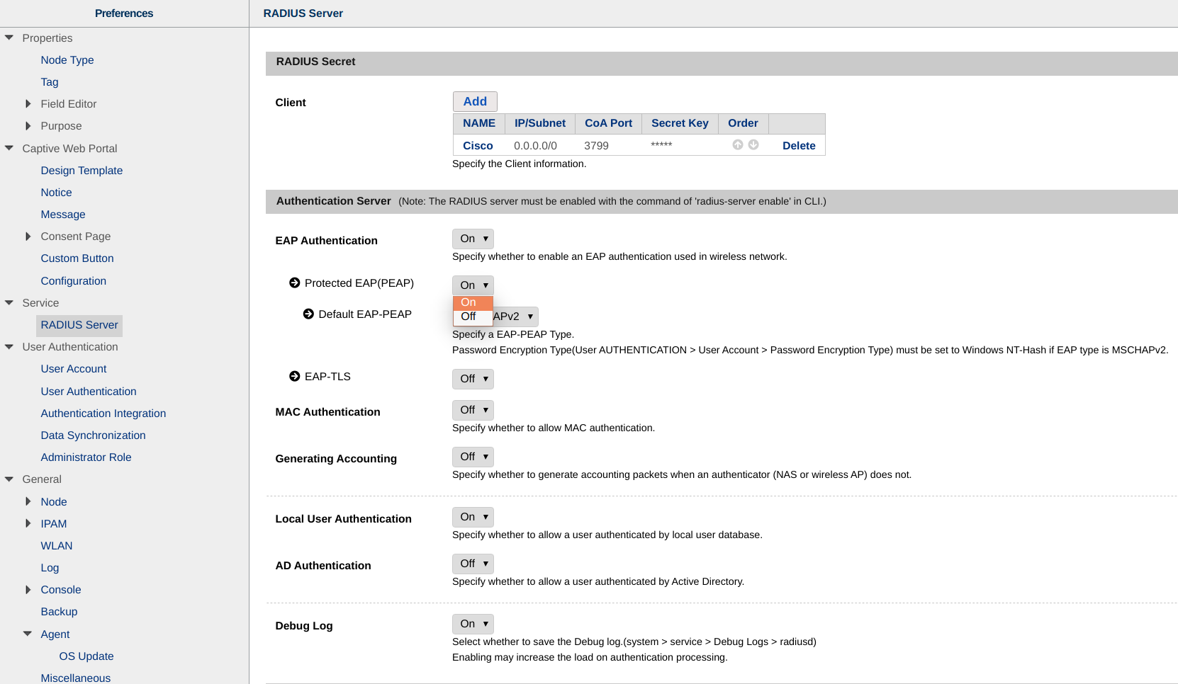 Improved to provide ON / OFF option for PEAP in RADIUS setting (#20804)