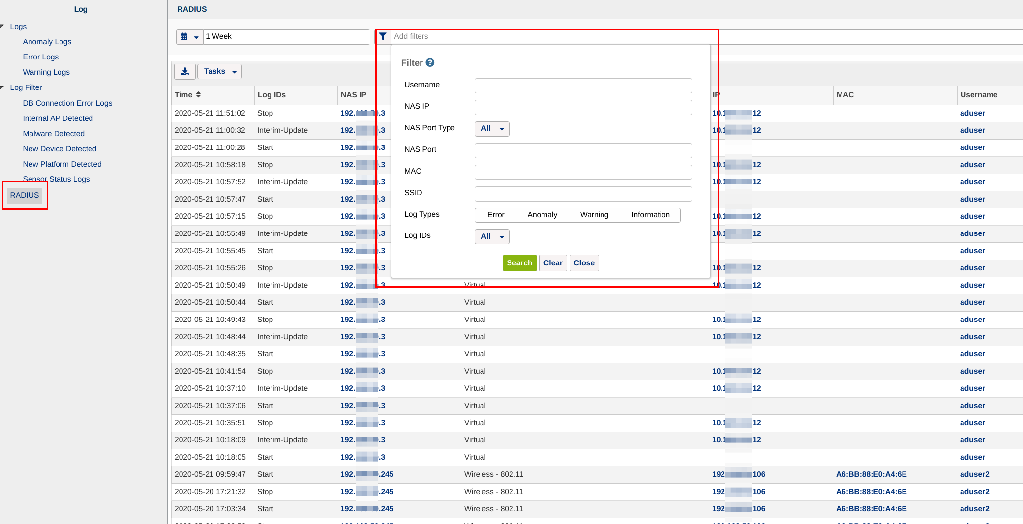 Added the ability to save the RADIUS audit log as a log filter (#20845)