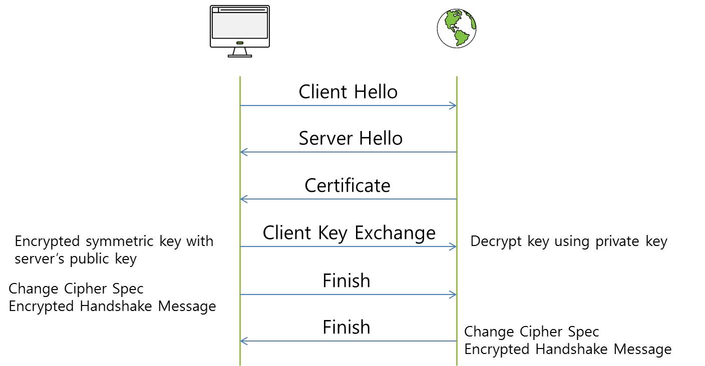 - Client Key Exchange: The client sends the pre-master-secret key to the Web Server, Symmetric key sharing