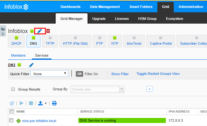 Navigate to Grid > Grid Manager and click on the edit button next to Infoblox.
