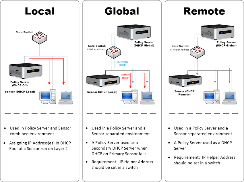 네트워크 센서에서는 DHCP 서비스를 제공하지 않고, 리모트 서버에서 DHCP 서비스 제공 |