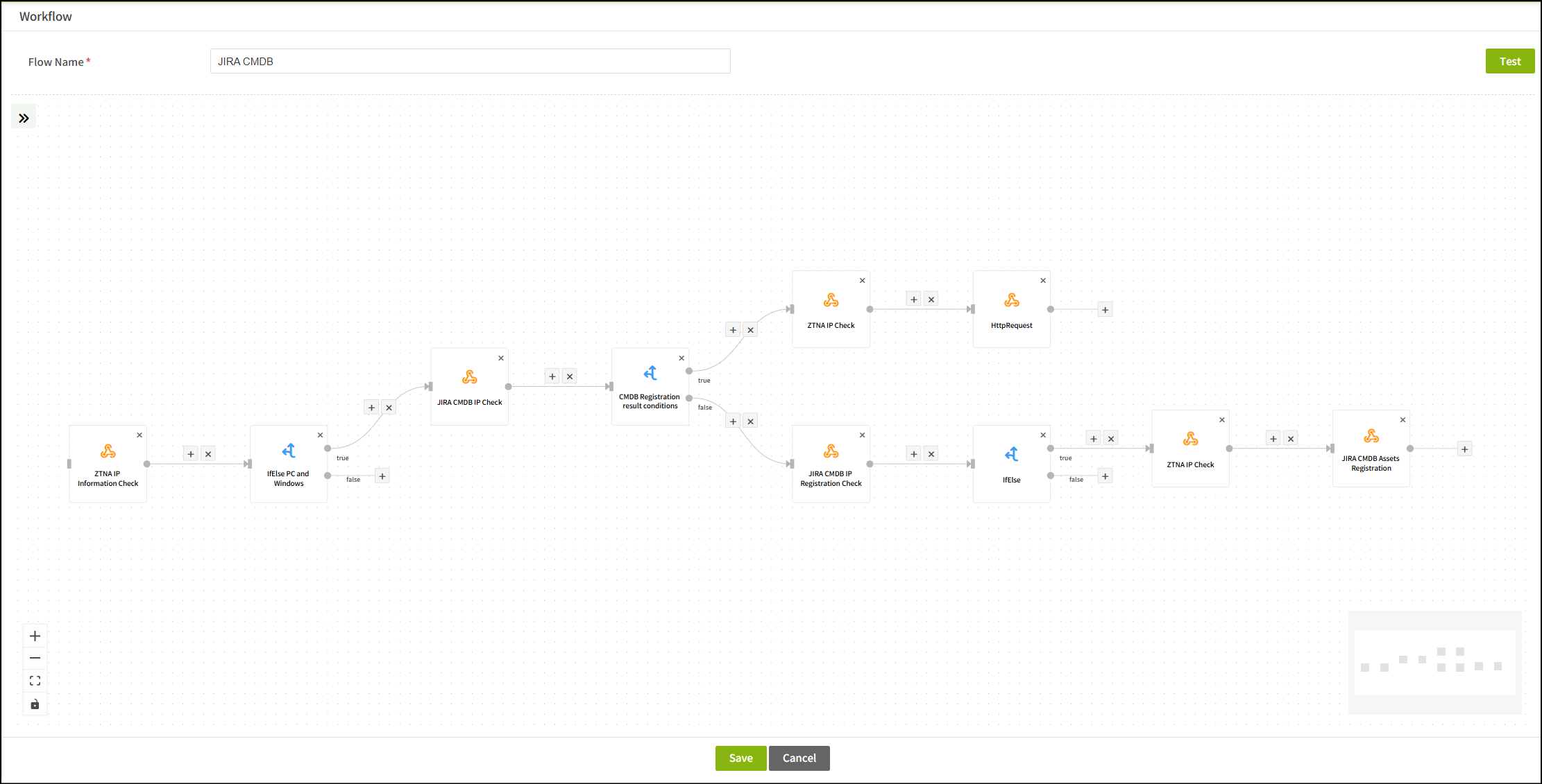Using Genian ZTNA's Workflow feature, assets can be automatically registered or updated in JIRA Assets when nodes are detected.